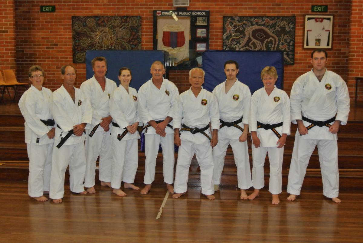 The Matsubayashi-ryu Karate Association of Australia (MKAA) hosted a visit by Toshimitsu Arakaki sensei, 10th dan Hanshi, Vice President of the World Matsubayashi-ryu Karate Association – Okinawa headquarters, to Australia at the end of October 2013. Arakaki sensei conducted seminars over a week at the Harrington, Taree and Wingham dojos of the MKAA. Subjects covered were karate kata, bunkai, kata application and bo jutsu. All subjects were covered extensively and trained in a thorough manner. John Carlyle, Chief Instructor of the MKAA, was pleased with the high number of karate students attending from the 3 dojos as well as the Canberra branch. Most of the senior students took annual leave so they could attend this special training event.