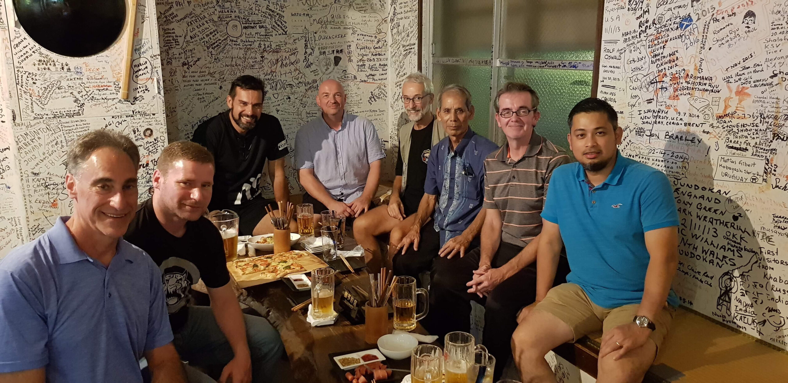 They were also lucky enough to visit some award winning businesses. The first an award winning Okinawan Soba Restaurant named Minosaku which is located at 3 Chome-8-1 Kumoji and of has a range of Soba and many other Okinawan dishes on the menu. The second the café of a champion barista at The Corner Coffee & Beans at 1 Chome-14-13 Matsuyama which offers an extensive range of coffee from around the world. Of course the Dojo bar on Sogen-ji Dori owned by Matsubayashi-ryu Karate-ka James Pankiewicz provided a great place to relax after training and meet with other Karate practitioners from around the world.